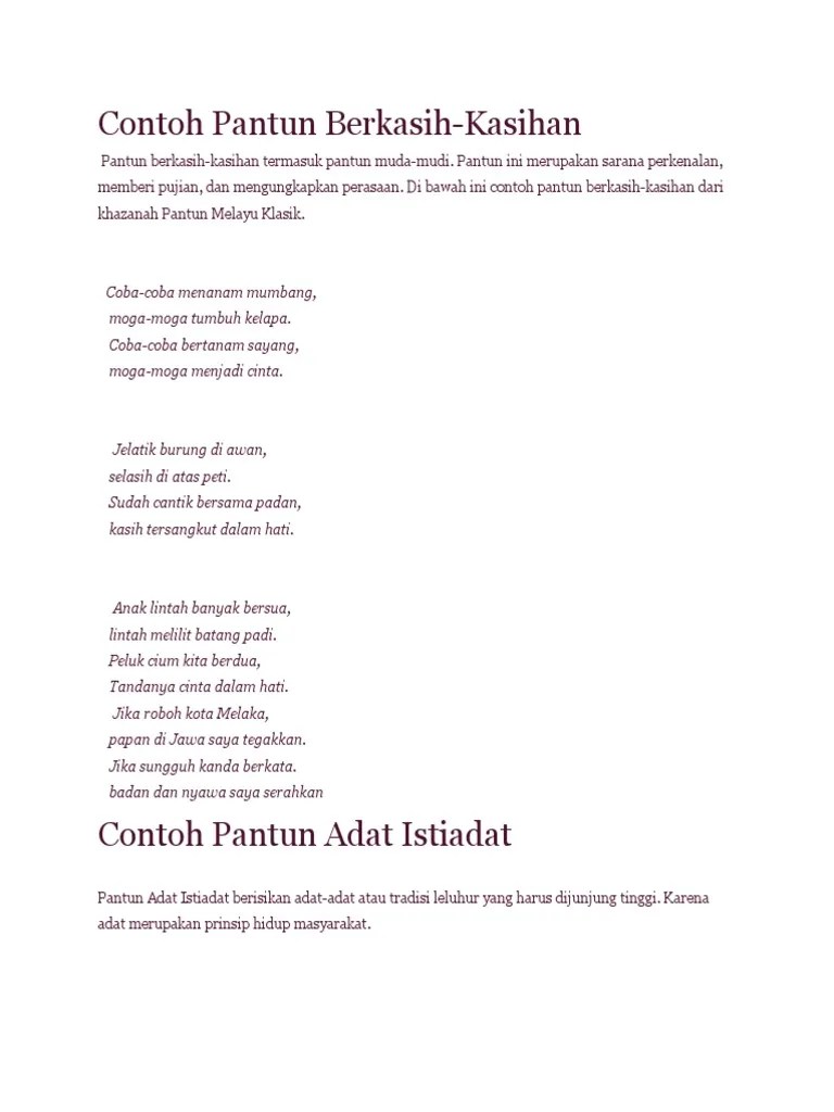 Puisi Cinta Melayu Klasik : Puisi Cinta. Puisi dalam bahasa melayu larut dalam jiwa masyarakat melayu tidak hanya sebagai satu hasil kesenian, tetapi juga mengjangkau alam mistik, berperanan sebagai wadah pemeliharaan adat, pembinaan sahsiah, pengajaran … Dec 27, 2016 · 12 contoh majas epifora dalam kalimat dan puisi bahasa indonesia; Ia kerap dipanggil dengan singkatan namanya, sdd.ia adalah putra pertama pasangan sadyoko dan saparian. Nah, setelah mengetahui tentang struktur puisi, pada materi puisi bahasa indonesia kelas 10 ini, mipi juga akan mengenalkan kamu pada tiga jenis puisi, sebagai berikut: Jan 18, 2017 · 12 contoh majas epifora dalam kalimat dan puisi bahasa indonesia; Soalan > stpm sebenar > semester 3.